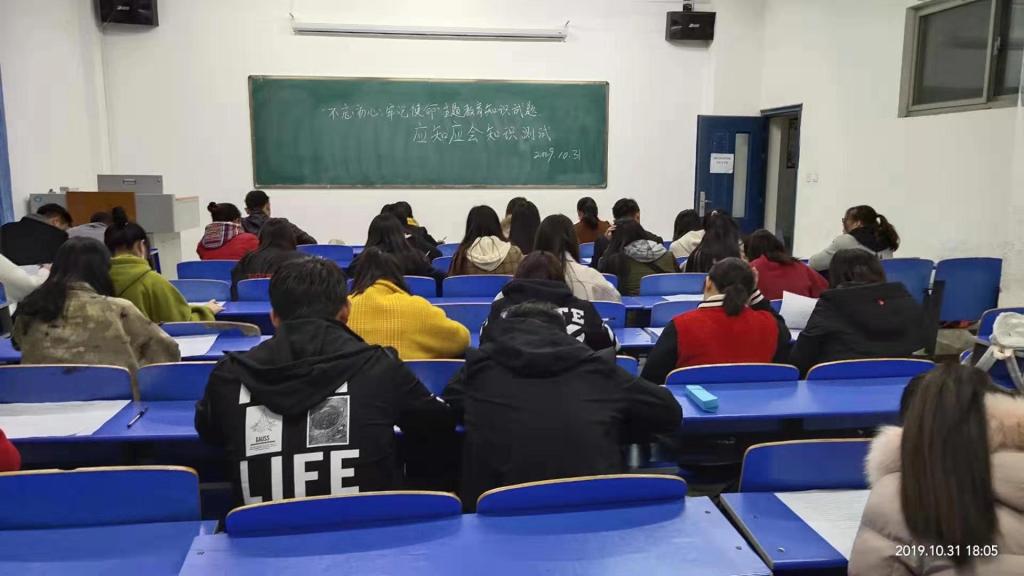 10月31日,beat365中文唯一官网学生党支部在4号教学楼开展“不忘初心、牢记使命”主题教育应知应会知识测试答题活动。学生党支部30余名党员参加了此次活动。