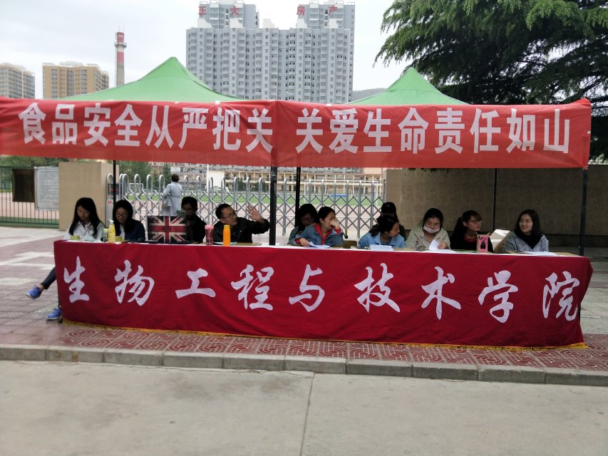 在天水师范学院“安全周”期间,beat36515级食品质量与安全一班承办beat365中文唯一官网第三届食品安全展活动,以“关注食品安全真爱身体健康”为主题的活动于4月11日在天水师范学院东操场门口如期举行。此次活动秉承“国以民为本,民以食为先,食以安为先”的主旨普及食品安全相关知识,通过趣味问答、宣传手册发放以及知识宣讲提高师生对食品安全的认识程度。