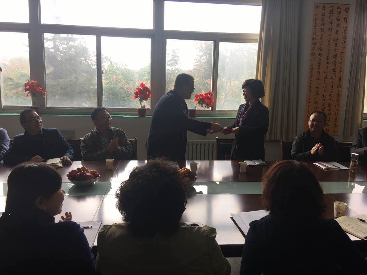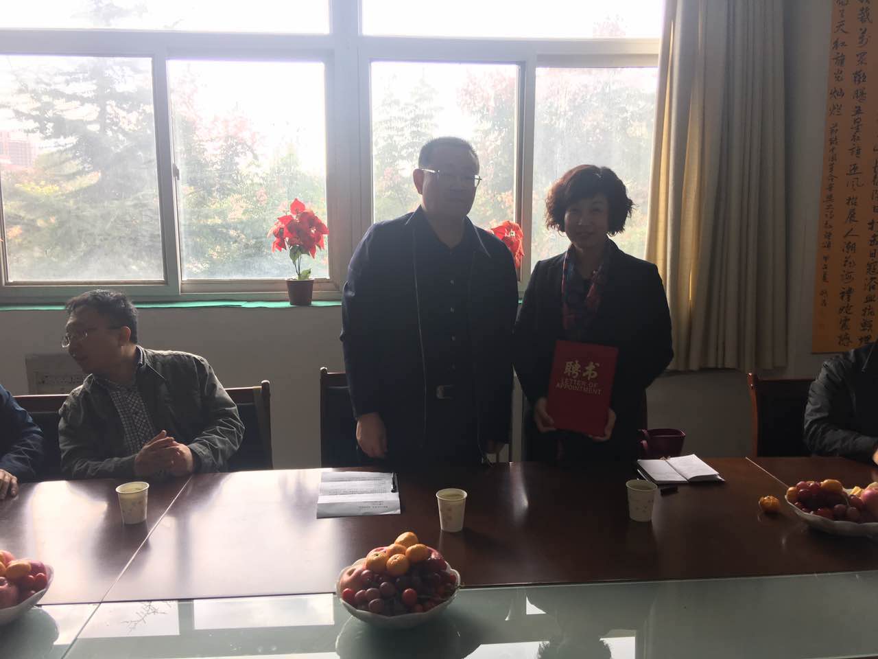 王旭林副校长代表学校为吕红教授颁发了兼职教授聘书,并介绍了天水师范学院基本情况。王旭林副校长表示在吕红教授的帮助和指导下,生物学院重点实验室和学科专业建设必定会更上一层楼。