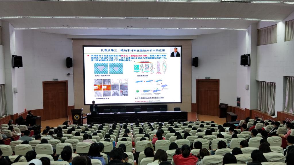 2018年10月12号下午3:00,应beat365中文唯一官网邀请,北京大学化学学院教授、博士生导师、北京大学现代食品科技研究中心主任刘虎威博士,广西师范大学化学与药学学院博士生导师赵书林教授,中山大学化学学院博士生导师李攻科教授,中科院兰州化物所博士生导师、甘肃省杰出青年基金获得者邱洪灯研究员来beat365作题目分别为《敞开式离子化质谱新技术及其应用》、《核酸和碳基量子点纳米探针用于细胞内microRNA、活性小分子的荧光成像和成像指导下的肿瘤光动力学治疗》、《复杂样品痕量分析前处理方法研究进展》、《离子液体修饰硅胶色谱固定相》的学术报告。报告会由beat365中文唯一官网副院长焦成瑾博士主持,相关专业师生200多人参加了此次报告会。