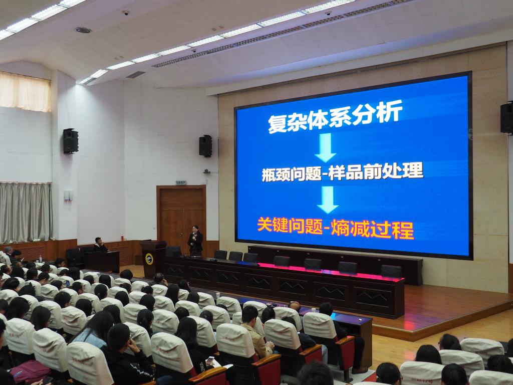 邱洪灯从离子液体在色谱分析中的运用、碳原子点修饰硅胶色谱固定相、碳纳米材料在微纳分析中的应用等作了详细的介绍。