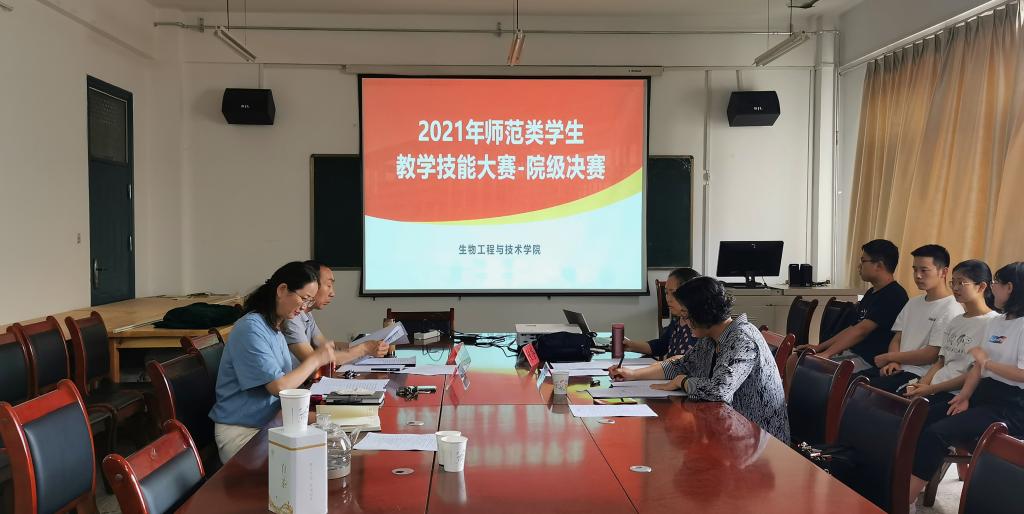 根据学校《关于组织开展师范类学生教学技能大赛的通知》(天师院教字[2021]39号)文件精神,为进一步增强师范生实践应用能力和创新能力,彰显师范特色,强化学生教学技能,培养具有高尚师德修养、扎实专业知识、优秀教学技能、宽阔学术视野、先进教育理念、独立研究能力的卓越教师。beat365于2021年7月4日下午在举办了2021年生物科学专业(师范类)学生教学技能大赛院级决赛,2018、2019、2020级生物科学专业的9名同学参加了比赛。