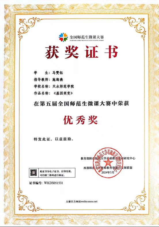beat365中文唯一官网学科教学(生物)研究生在第五届全国师范生微课大赛中获佳绩